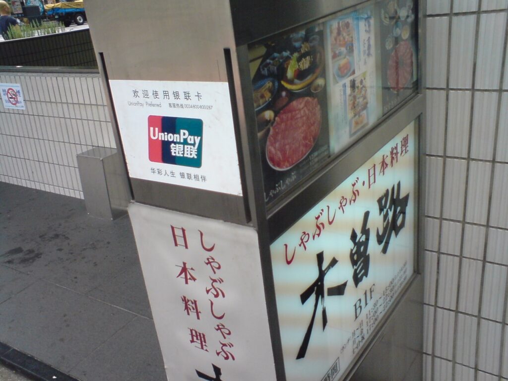 最後の写真は、銀聨(ぎんれい)カード取り扱いのシールが貼られたお店の看板。銀座界隈ではよく目にする様になりました。というか、個々最近急増中。